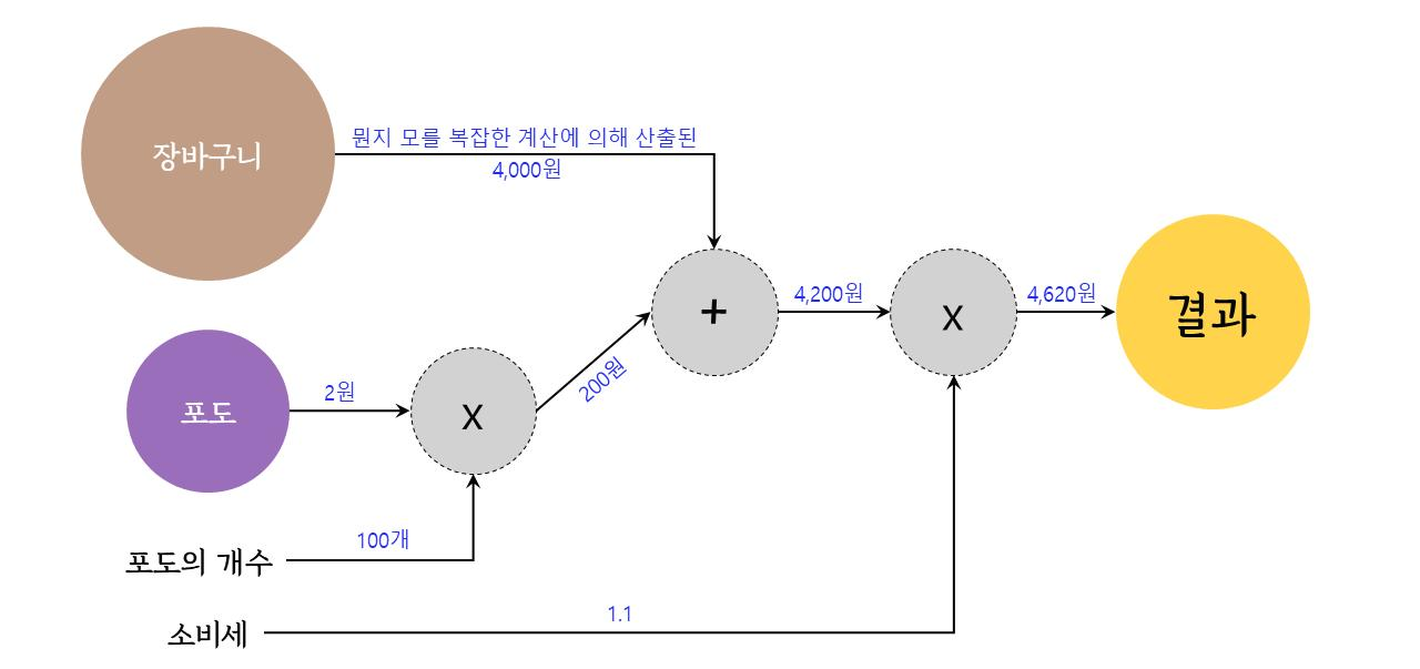이러한 일련의 과정을 계산 그래프로 나타내면 다음과 같다.