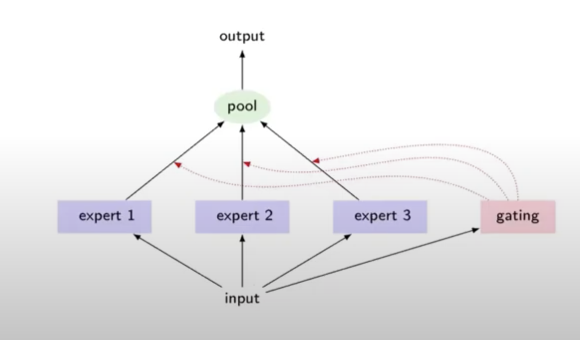 혼합 전문가(MoE)에서는 문제(task)를 subtask로 나누고, 이 subtask에 대해 각각의 예측값을 내놓아 pooling을 시도하는 방식이다.