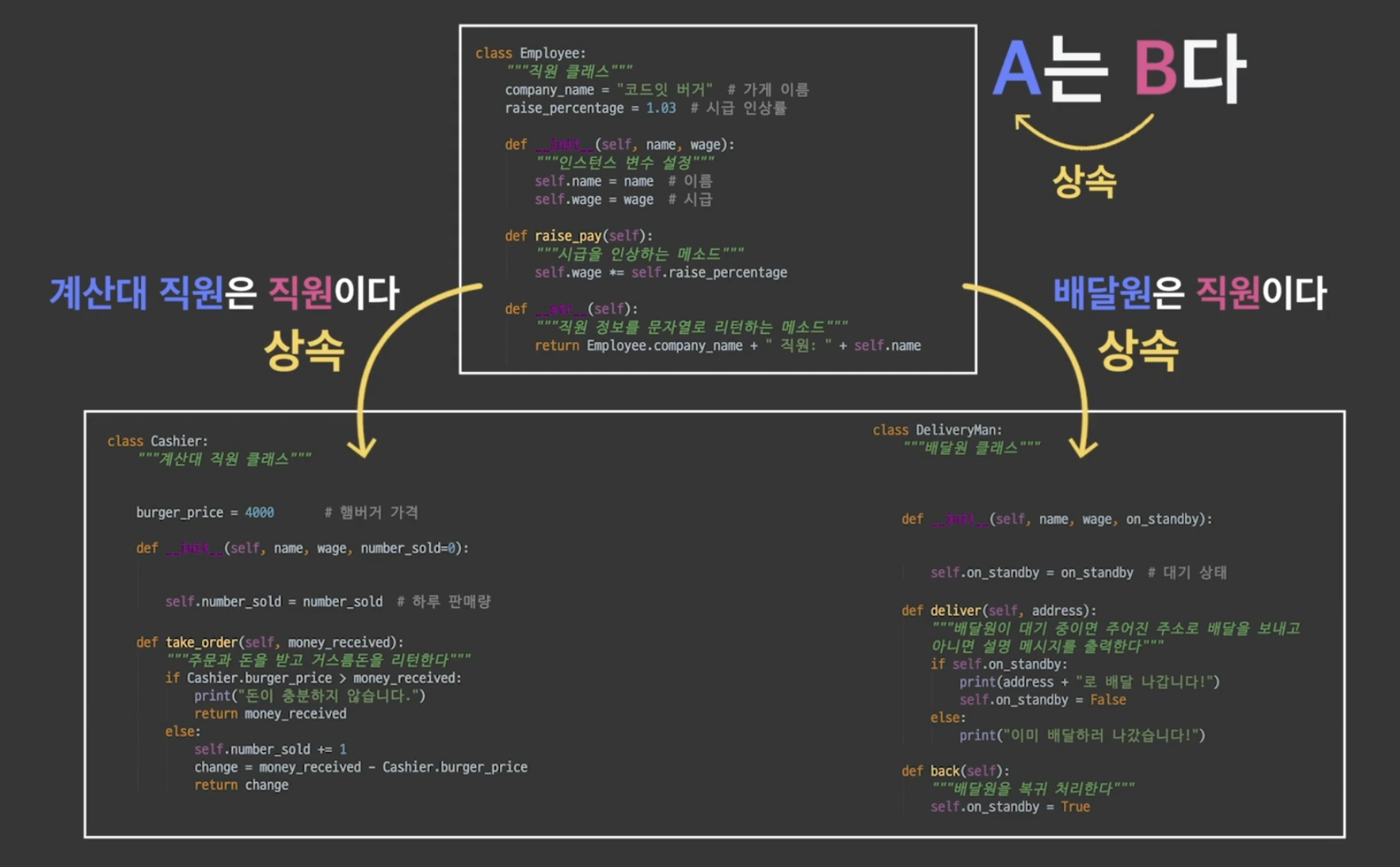 : 'A는 B다'일 때, A는 자식클래스, B는 부모클래스
