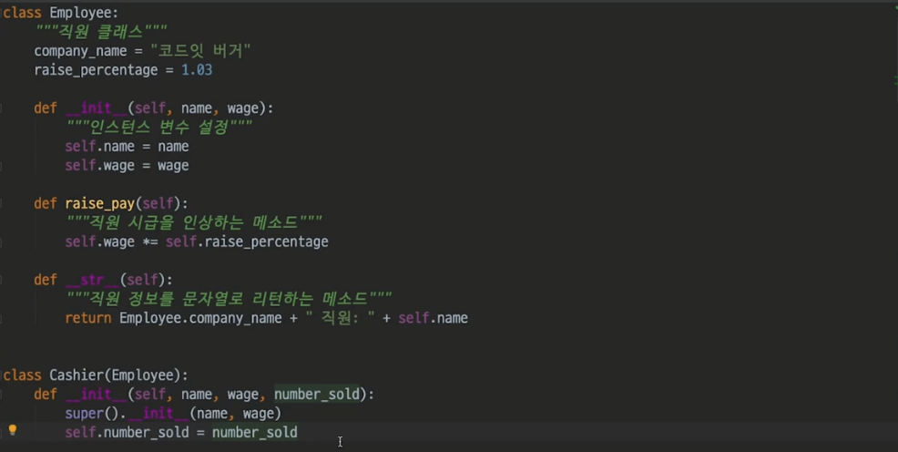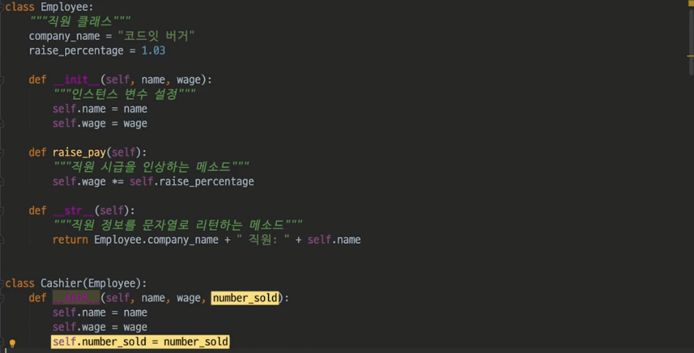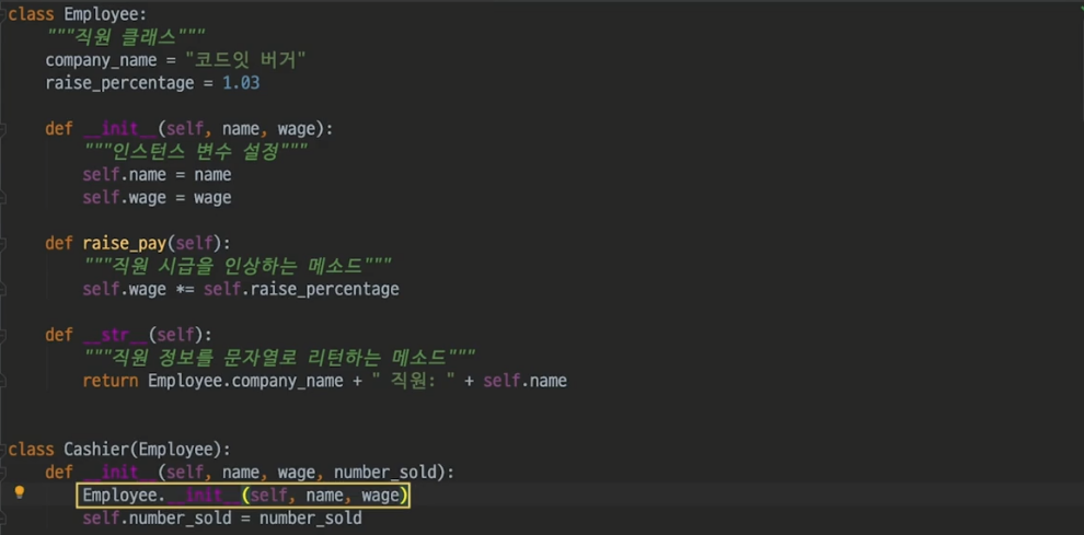 이때 겹치는 부분을 다시 적기에는 번거로우니 `super().__init__()`을 통해 간단히 호출할 수 있다.