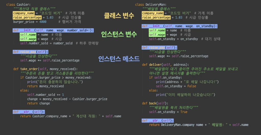 버거집에서 계산원과 배달원이 있을 경우,